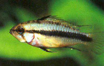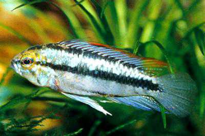 學名 A.trifasciata 中名 三線 分佈 巴西南部至阿根廷之間的 Guapor'e 河及 Paraguay 河流域 水質 弱酸至中性軟水 水溫 攝氏27度 大小 公, 6CM ; 母, 3.5CM 繁殖 洞穴式