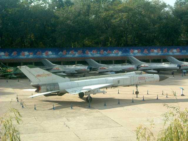 歼8II和歼6(远处),J8II是在J8基础上改为2侧进气、机头安装大功率雷达的高空高速歼击机,最大飞行速度2.2倍音速,最大飞行高度2万米。这架飞机是中美蜜月时期送到美国安装F16雷达和火控系统的飞机之一,后因89年天安门事件爆发,西方对中国军事禁运,该项改进计划搁置,送到美国的飞机在被扣留多年后才返回中国,但其技术性能已经被美国摸透。王伟被撞下时驾驶的就是这种飞机的改进型。在90年SU27引进之前,这是中国唯一的高性能战斗机。