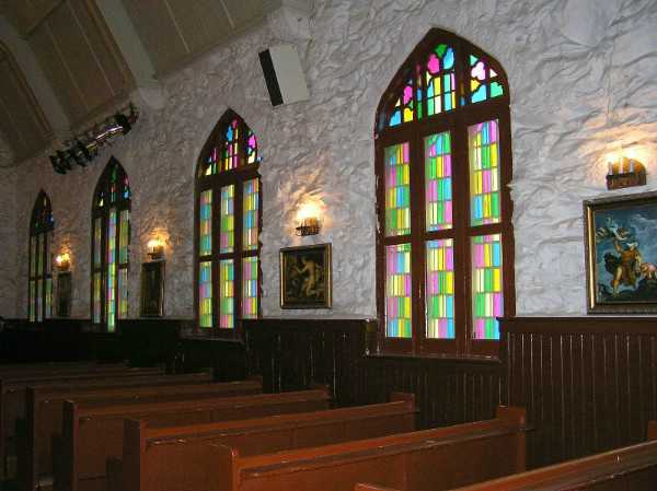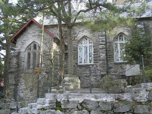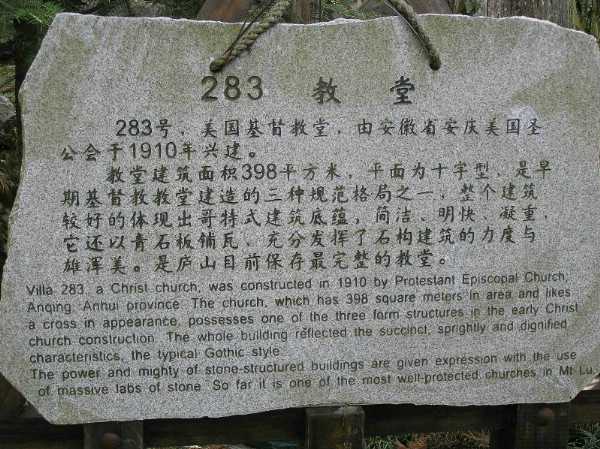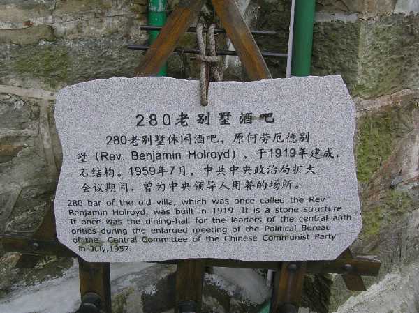 基督教堂(283号):原名“耶酥升天教堂”。1910年由美国基督教“圣公会”兴建。平面呈十字形,简洁、明快、凝重,墙体用粗糙的大块石块砌成,粗犷有力。1959年中共中央会议期间,这里曾作为舞厅[em01],毛泽东、刘少奇、周恩来经常来这里参加活动(跳舞?)。现用于供游客参观。