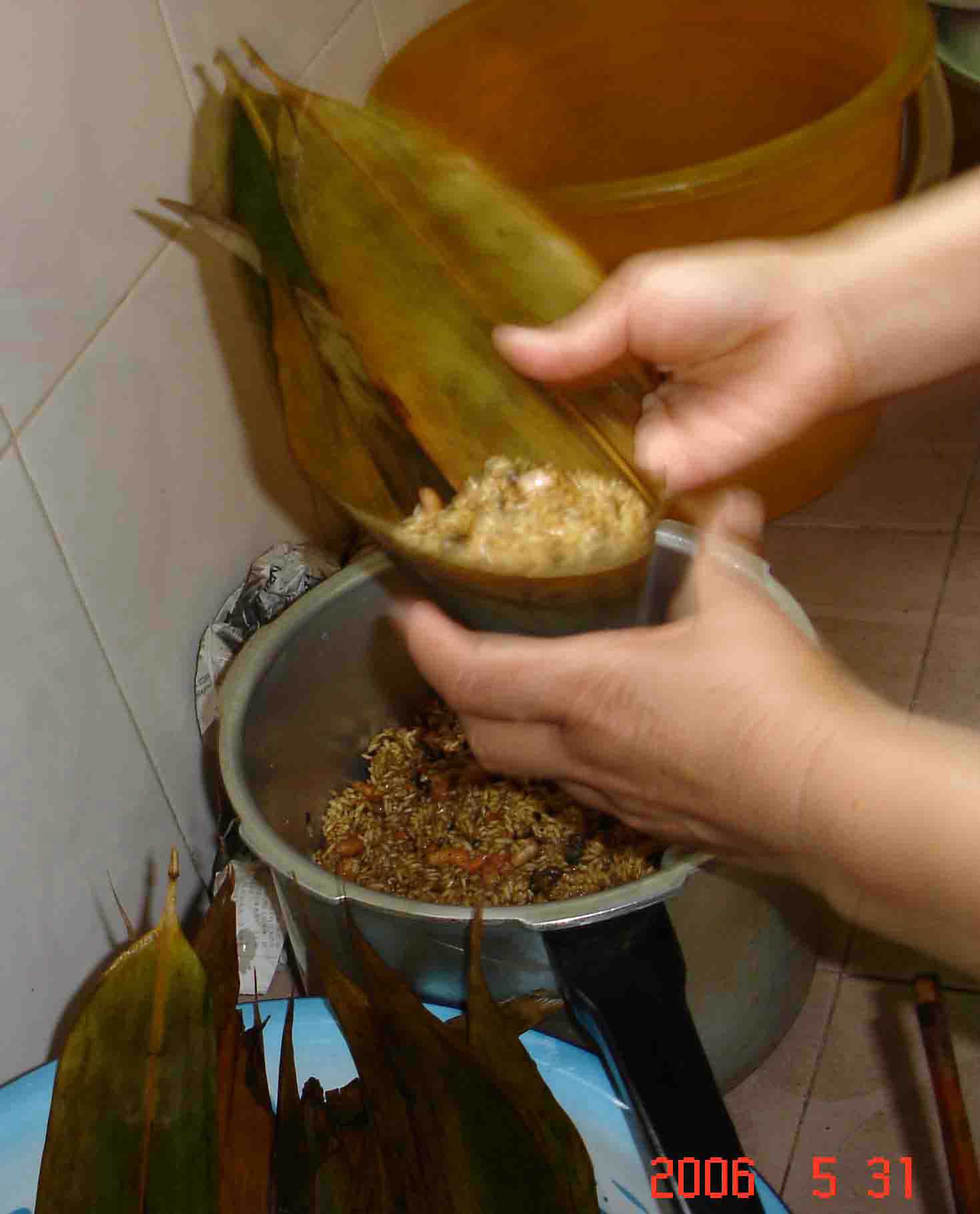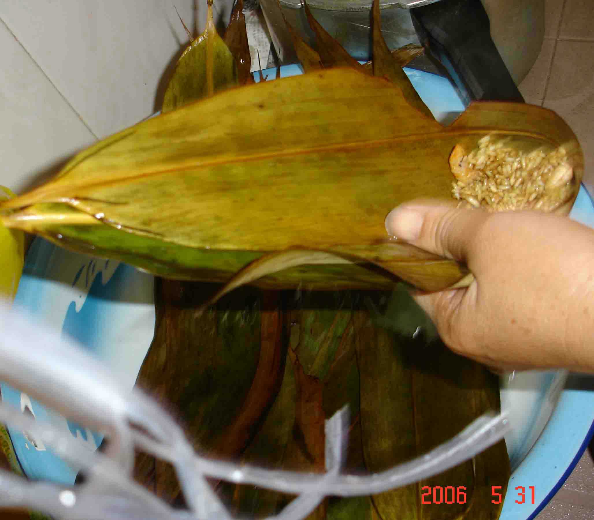PS:粽叶要事先用开水消毒洗净,并用碱泡下,包粽子的绳子最好买咸草,不要用塑料带...